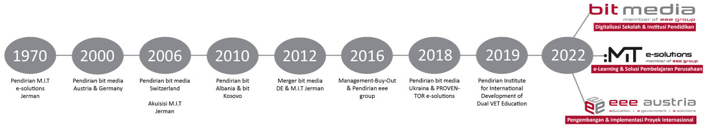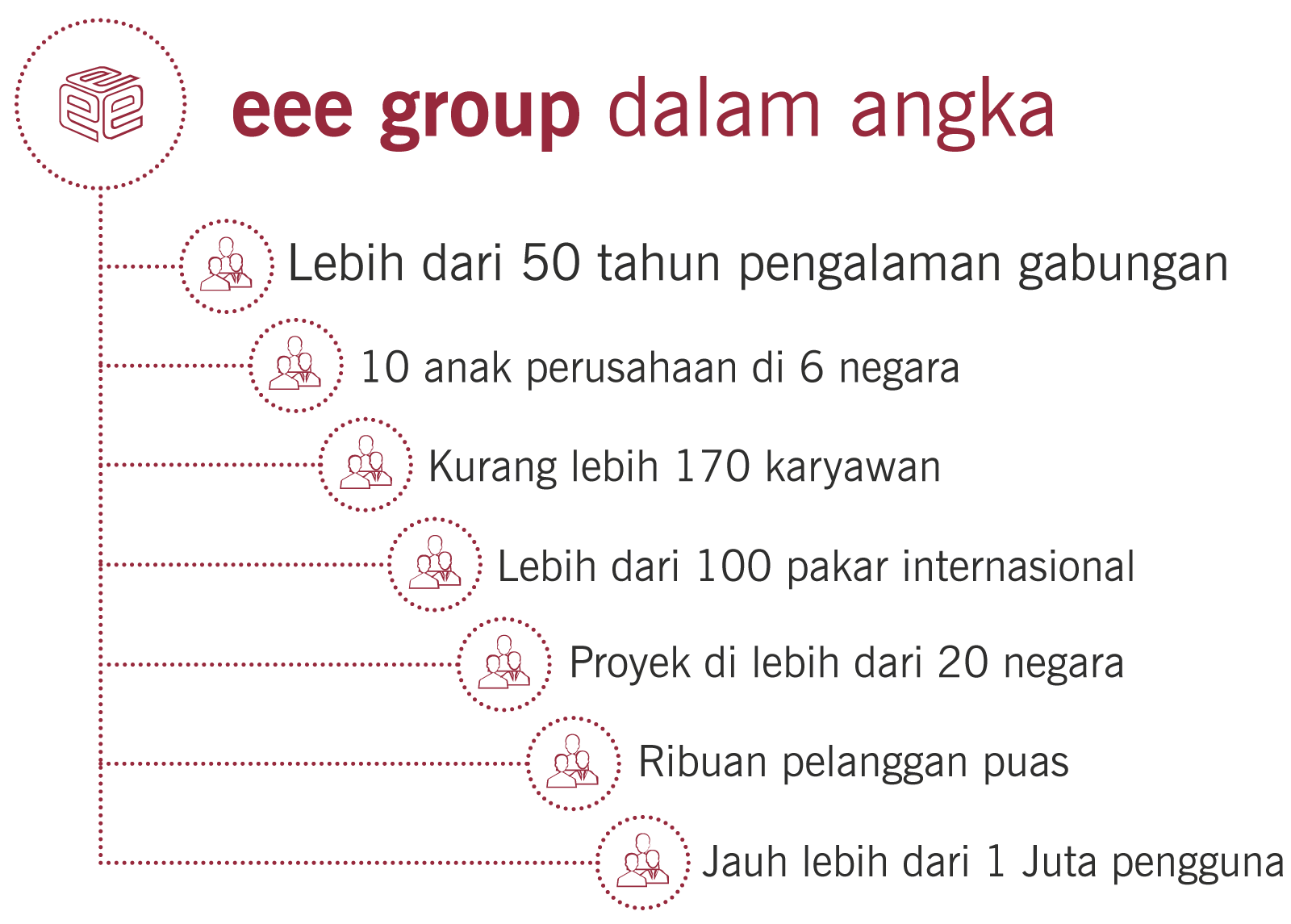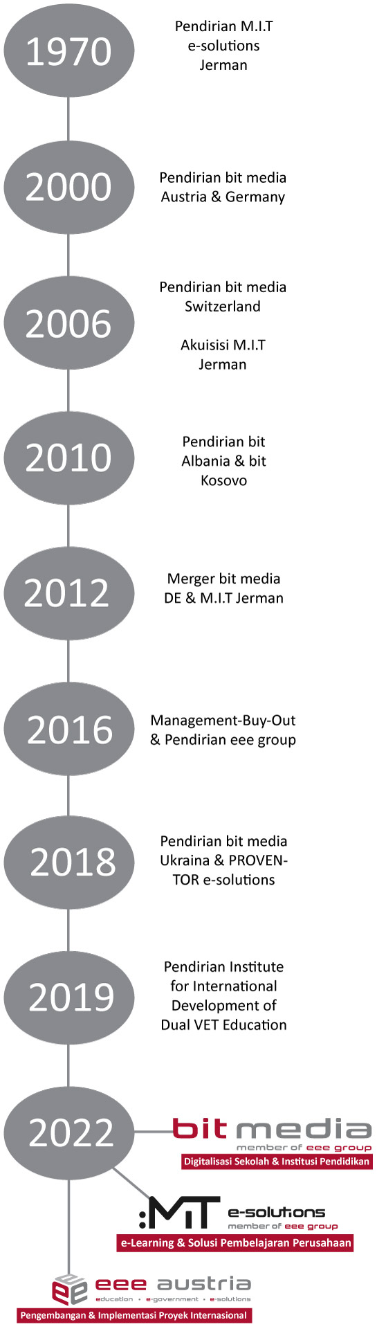 Dengan sekitar 170 karyawan berkualifikasi tinggi yang bekerja di 10 anak perusahaan, tim manajemen profesional dan tambahan sekitar 100 pakar pendidikan digital eksternal dalam grup eee – pendidikan, solusi elektronik, e-government – eee Austria international projects GmbH berkantor pusat di Graz, Austria beroperasi di lebih dari 20 negara di seluruh dunia.